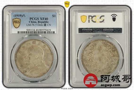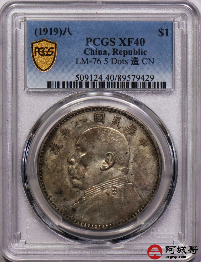 Lot:5 民国八年大头壹元 原汁原味 连口造 PCGS XF40