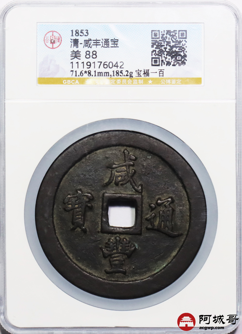 Lot:27 清-咸丰通宝 宝福一百 公博 美88