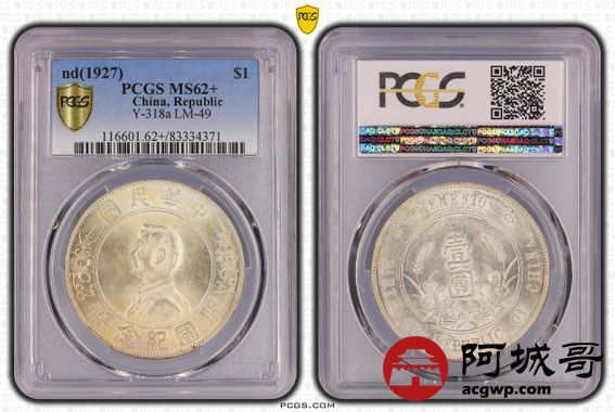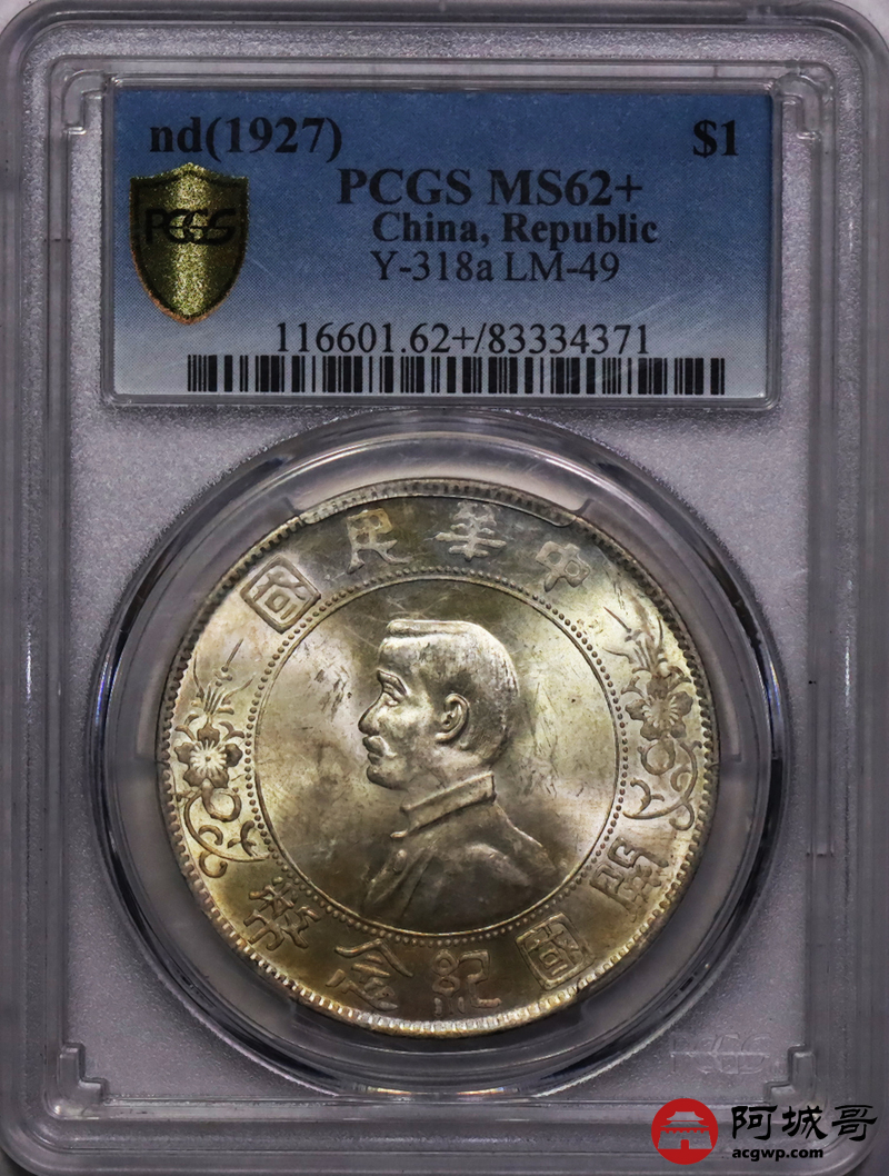 Lot:16 黄油原光 孙像小头壹圆 PCGS MS62+
