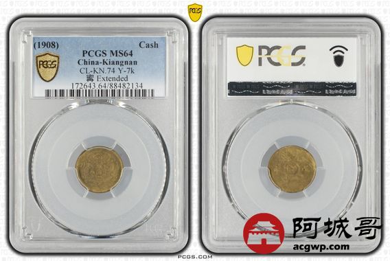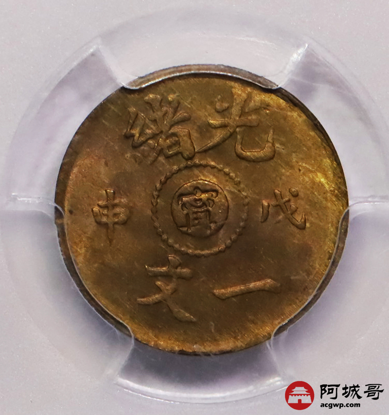 Lot:32 原光 光绪戊申中心甯一文 PCGS MS64