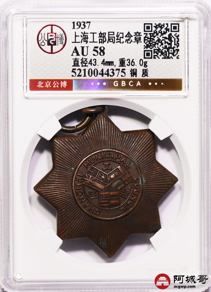 Lot:27 上海工部局纪念章 公博 AU58