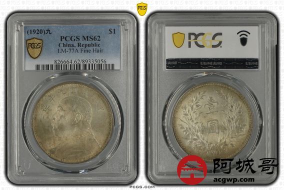 Lot:9 黄油原光 九年精发大头壹圆 PCGS MS62
