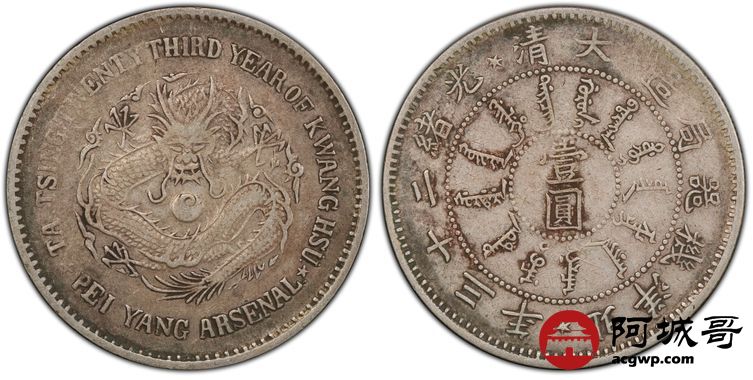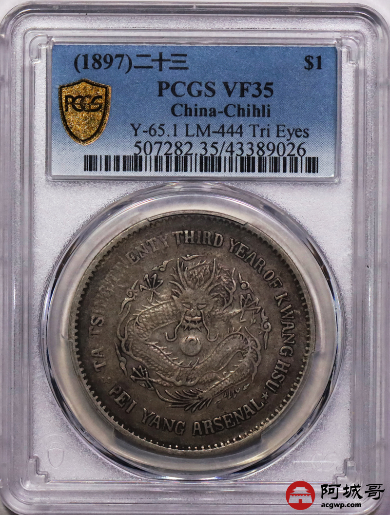 Lot:15 原味 包浆 机器局二十三年壹圆 PCGS VF35