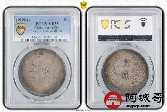 Lot:1 环五彩 民国八年大头壹圆 PCGS VF35
