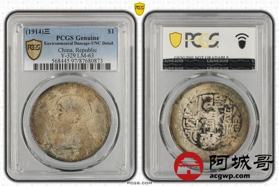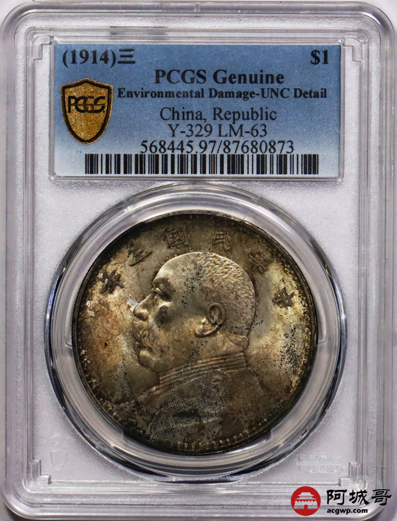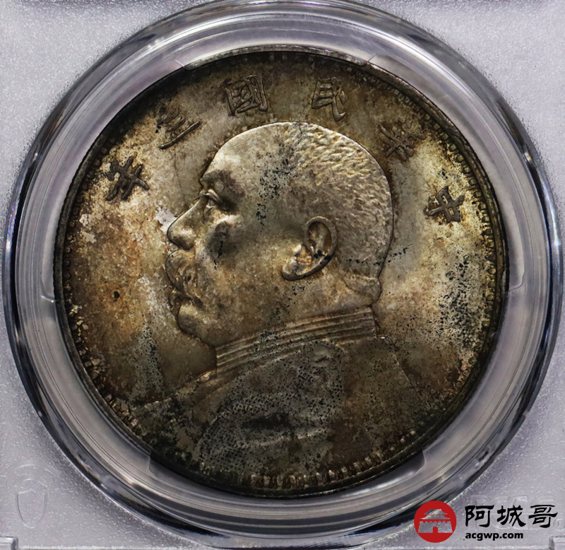 Lot:22 黄油原光 三年大头壹圆 老墨戳 PCGS UNC