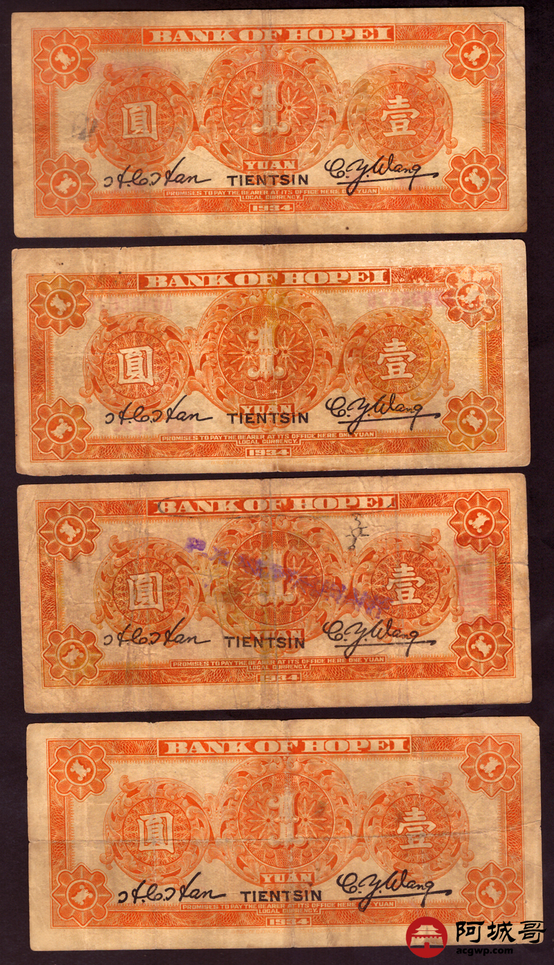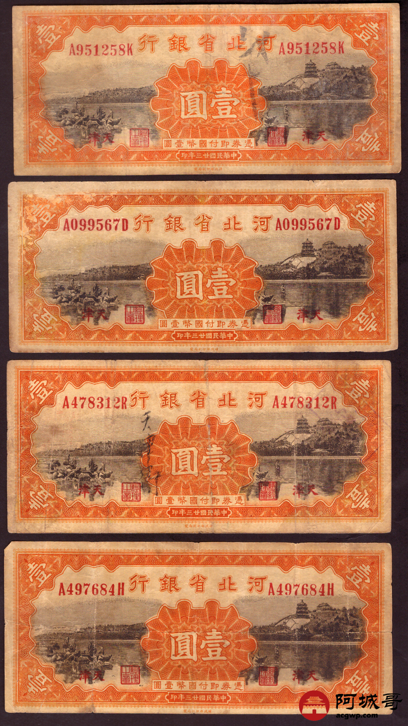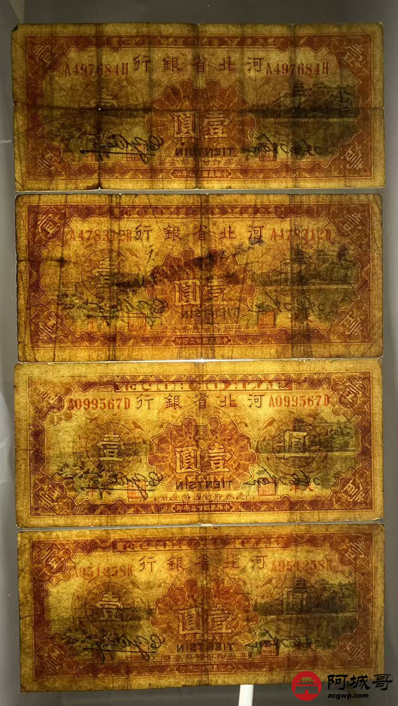 Lot:48 民国二十三年 河北省银行 壹圆 天津地名 4张 68至7成新
