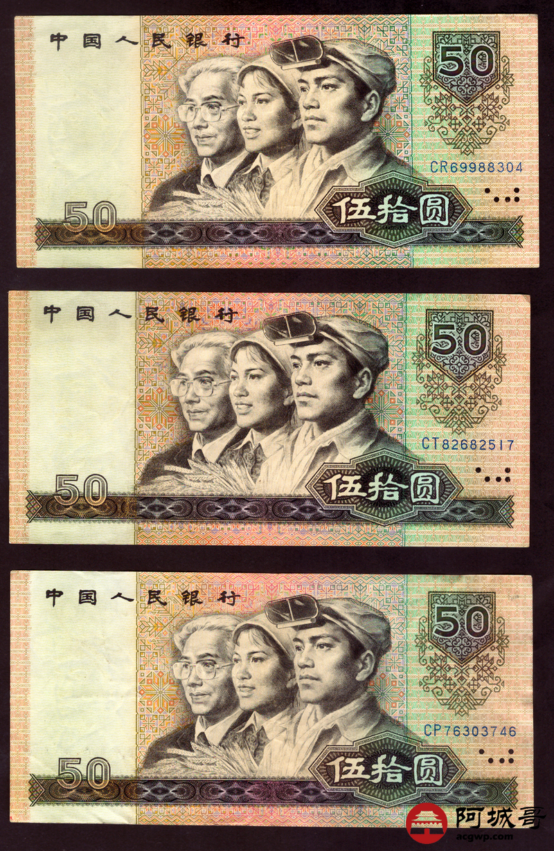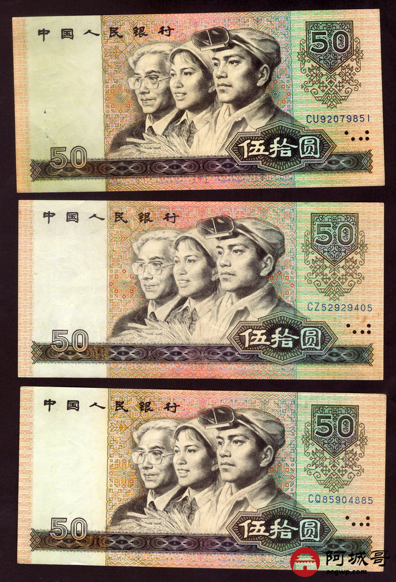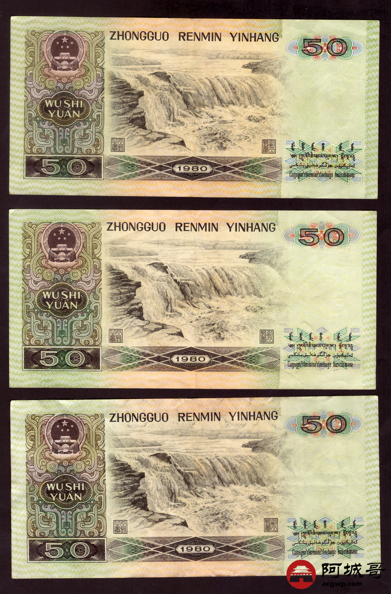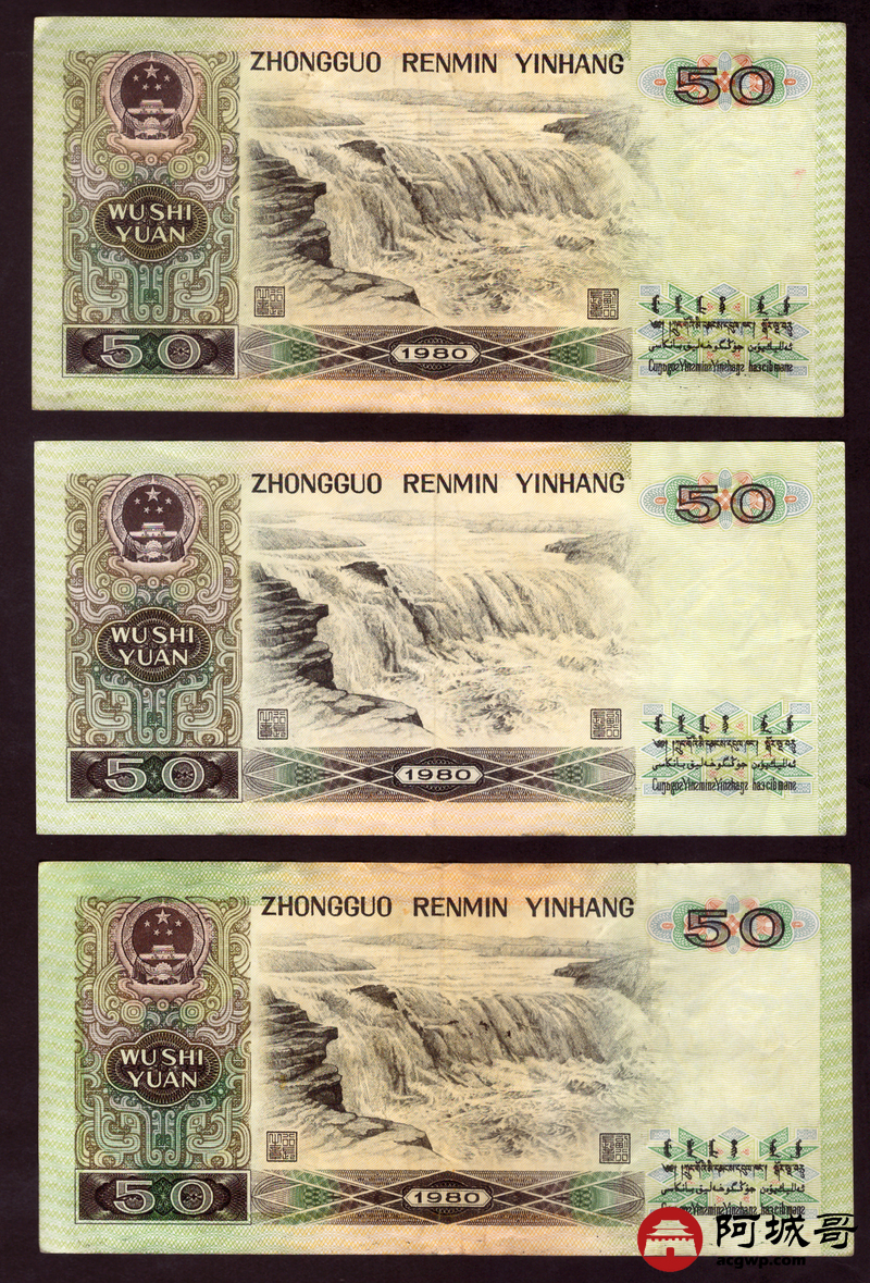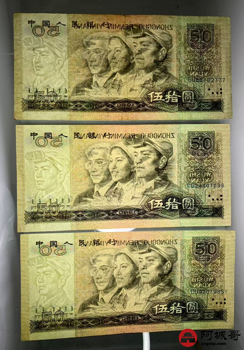 Lot:81 四版 1980年 中国人民银行 伍拾圆12张(其中有3张稀有首发冠CP;10张9至92成新,一张微裂88成新,一张订书机孔88成新) 1990年伍圆1张尾号豹子号约9成新 共13张