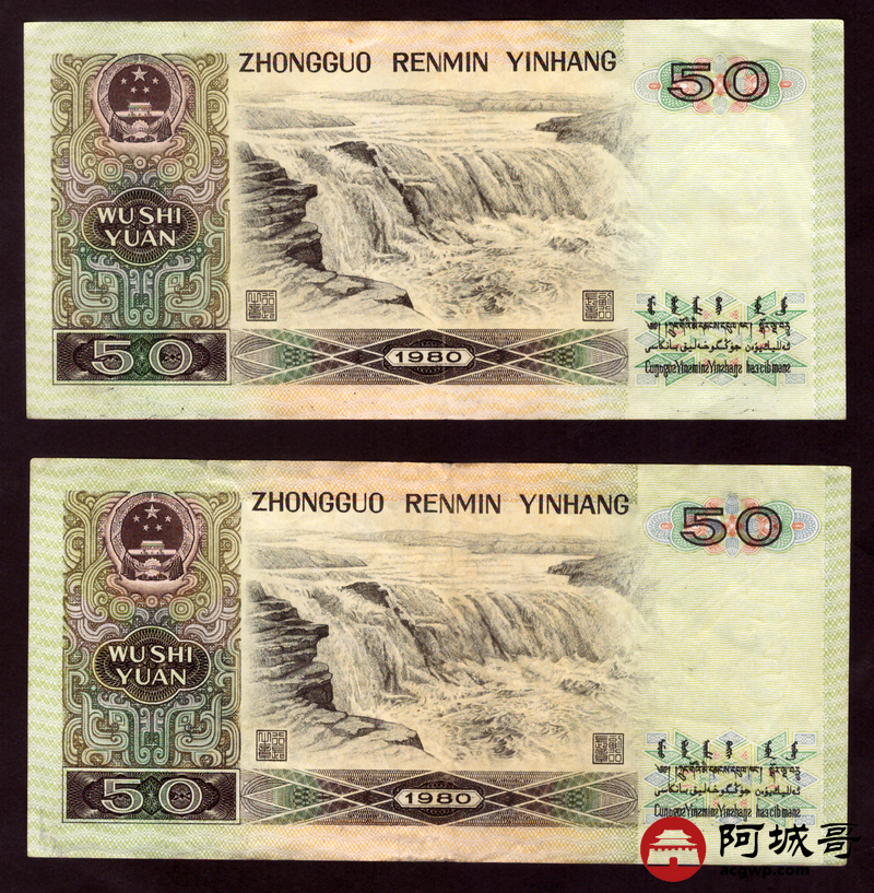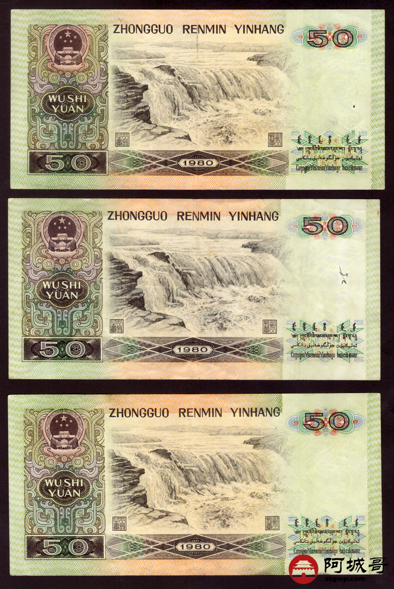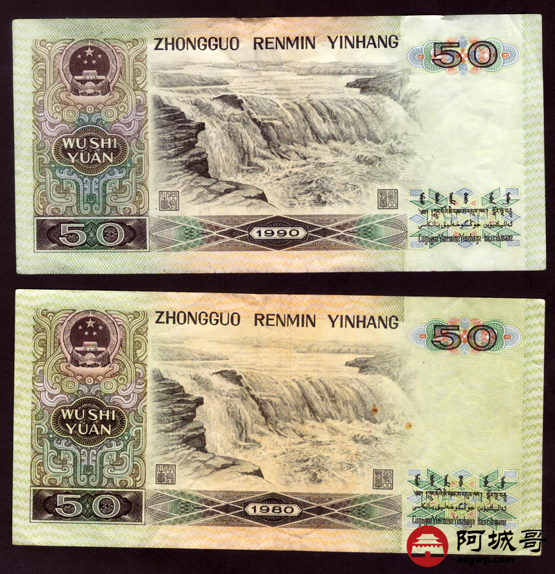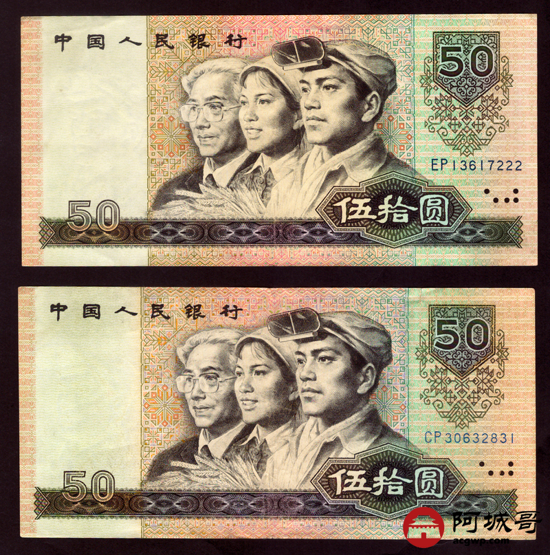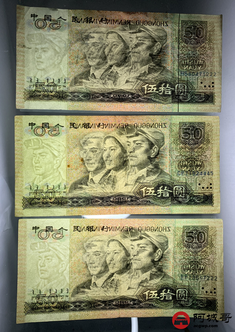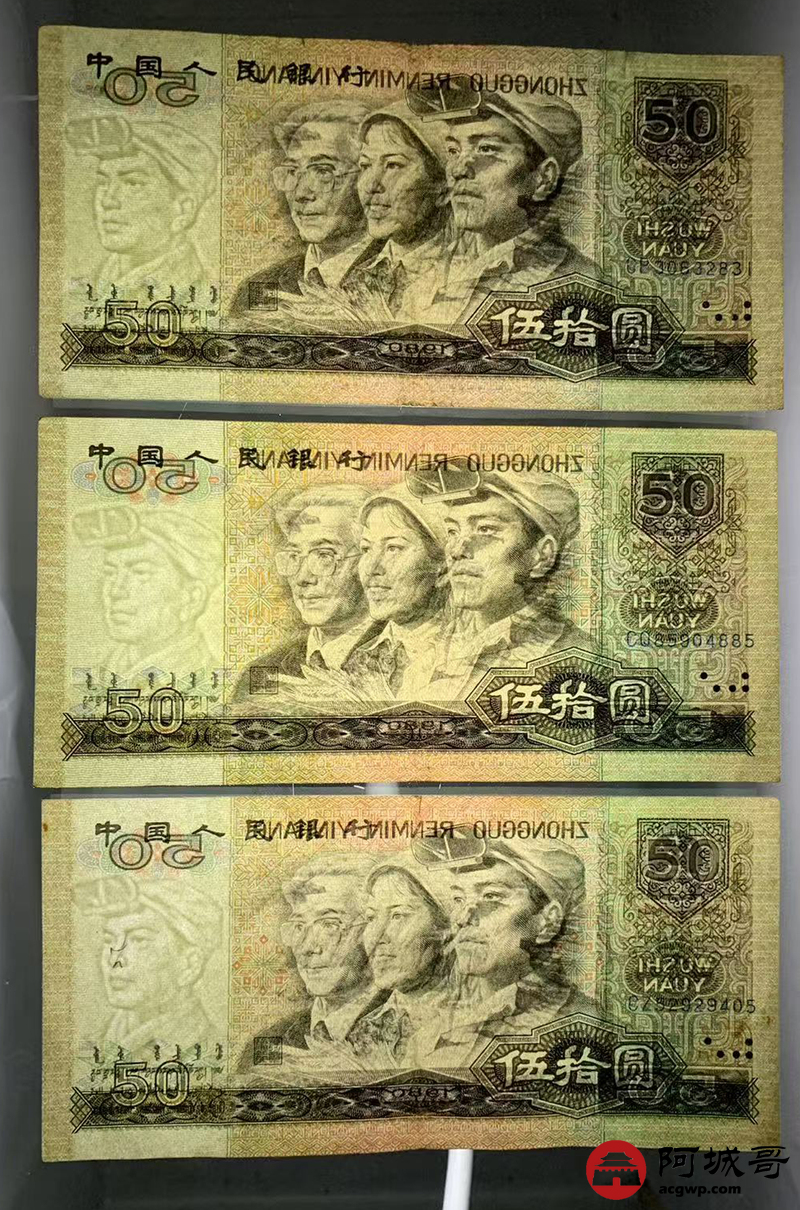 Lot:81 四版 1980年 中国人民银行 伍拾圆12张(其中有3张稀有首发冠CP;10张9至92成新,一张微裂88成新,一张订书机孔88成新) 1990年伍圆1张尾号豹子号约9成新 共13张