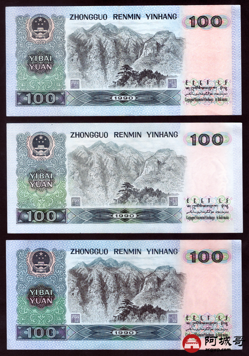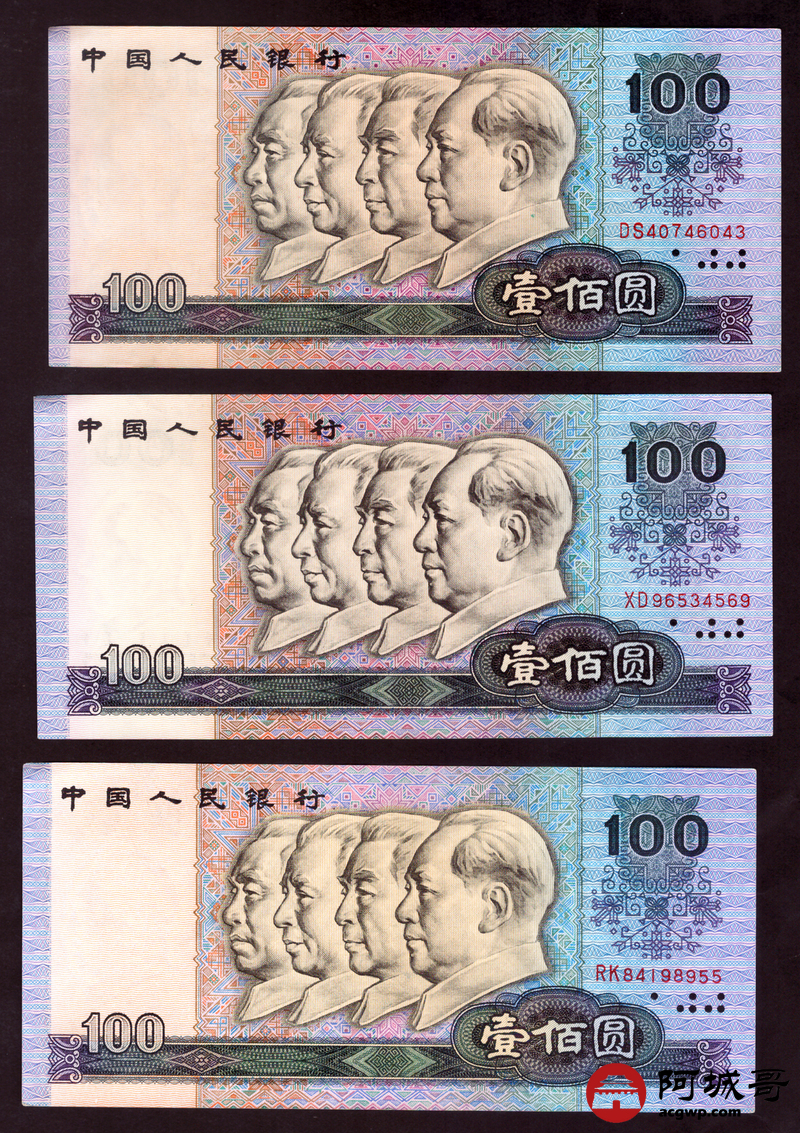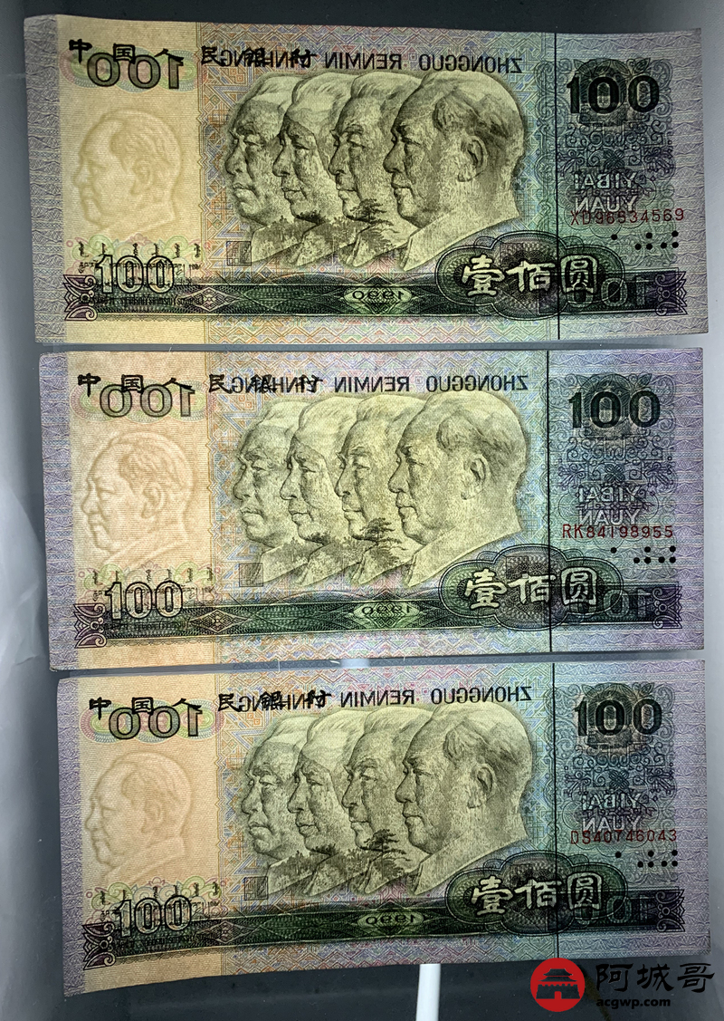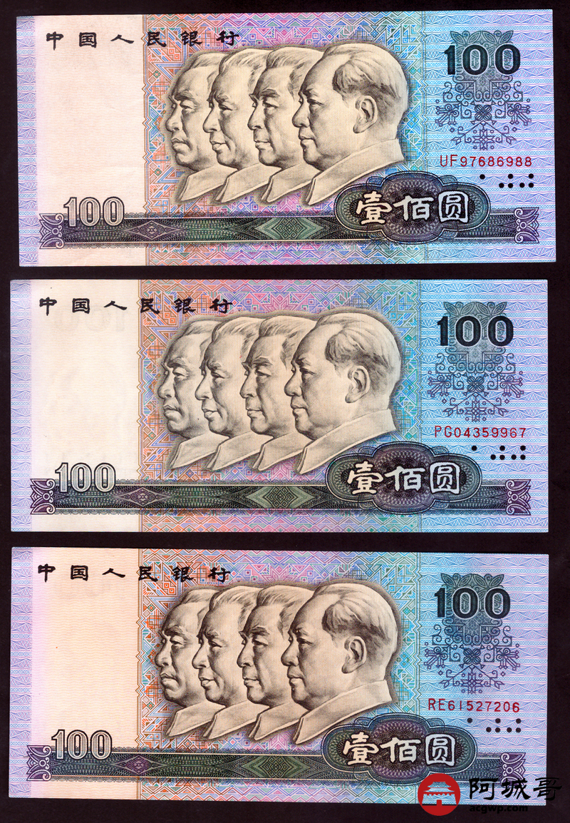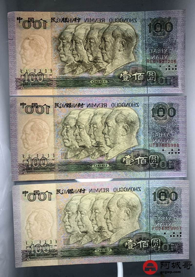 Lot:88 四版 1990年 中国人民银行 壹佰圆 6张 9至93成新