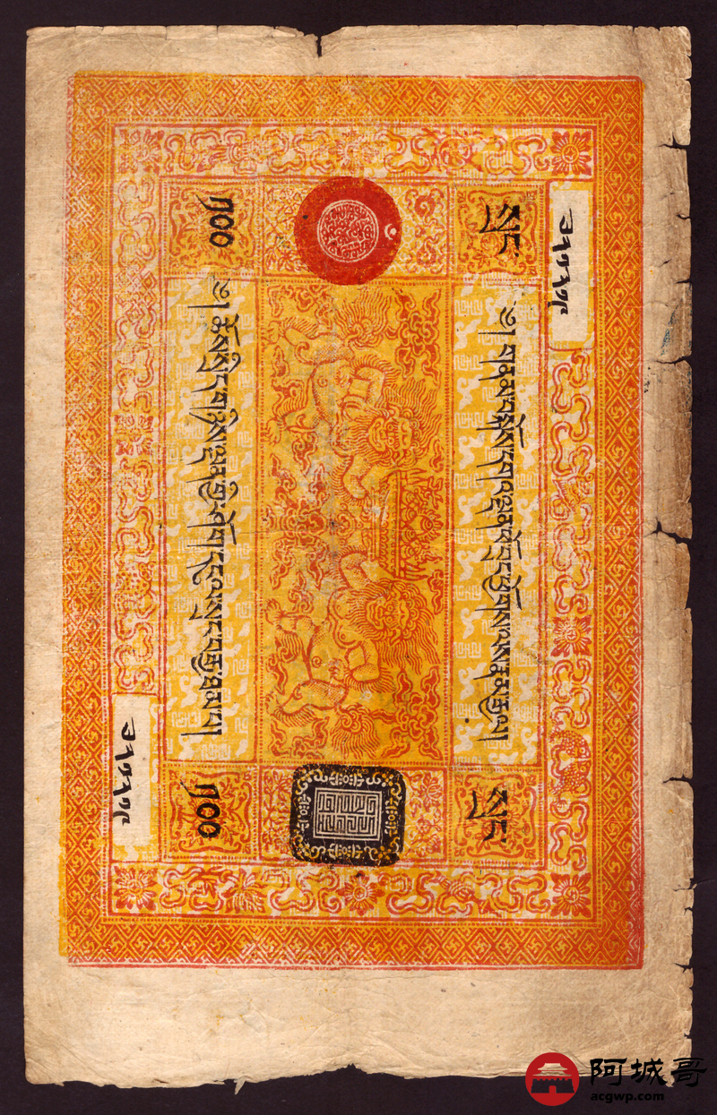 Lot:17 西藏老纸币 100两