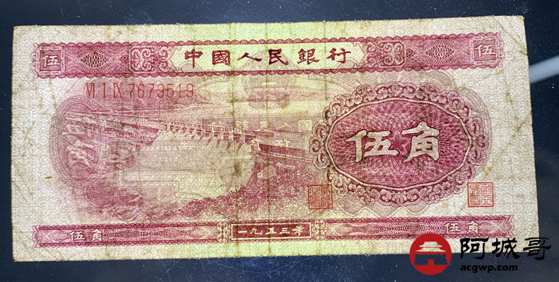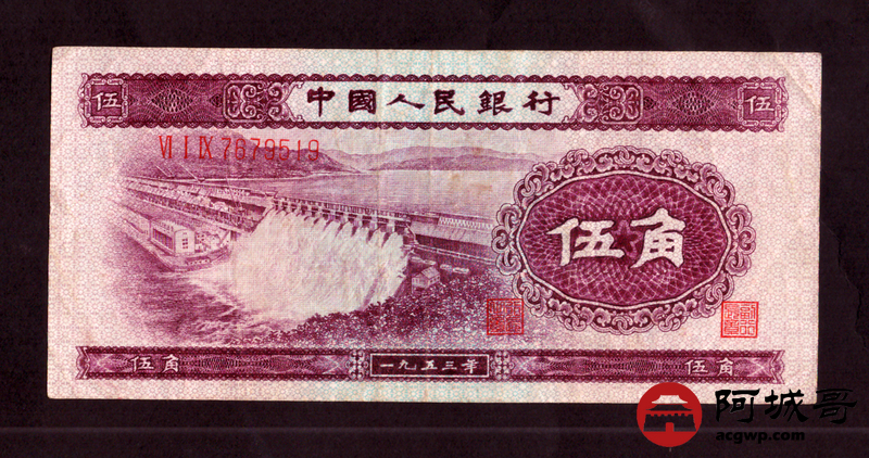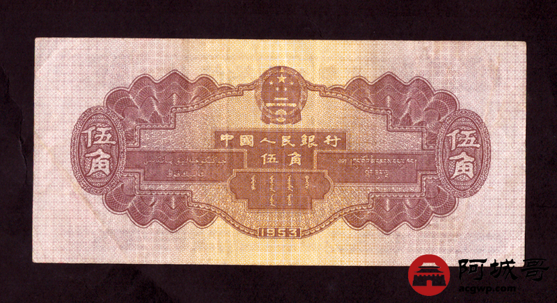 Lot:37 二版 1953年 中国人民银行 深水伍角 72成新