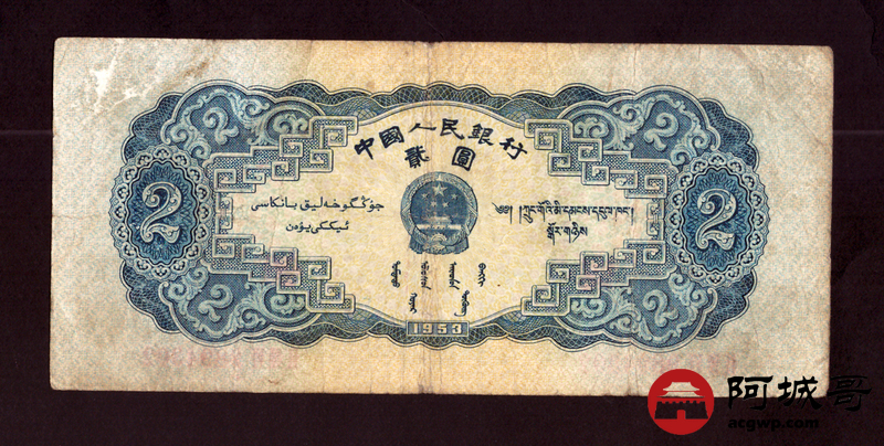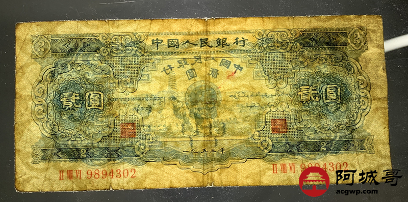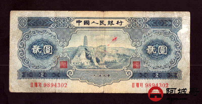 Lot:11 二版 1953年 宝塔山贰圆 69成新