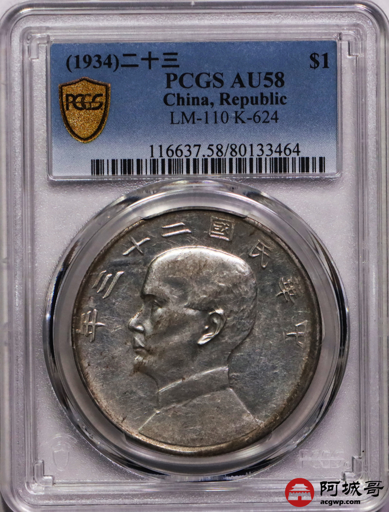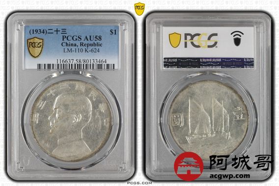 Lot:6 镜面转光 二十三年船洋 PCGS AU58