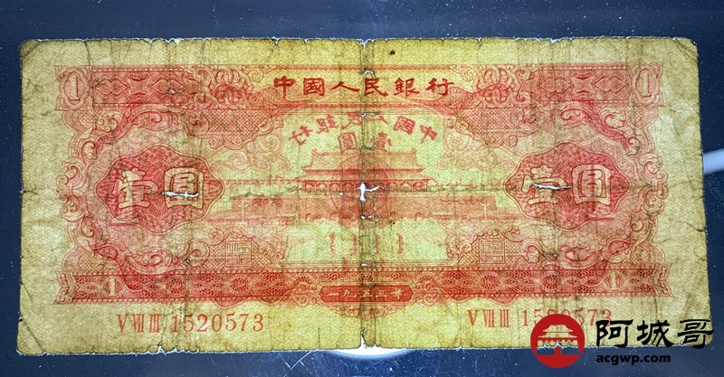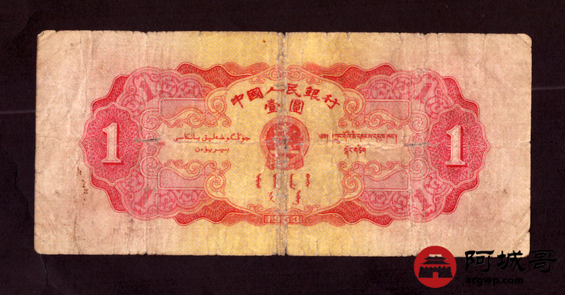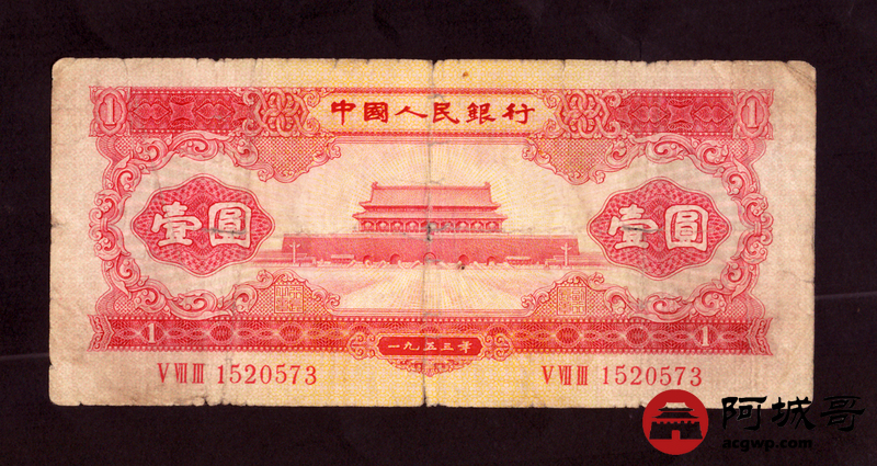 Lot:18 二版 1953年 红壹圆 好号无4 68成新