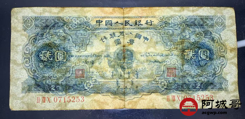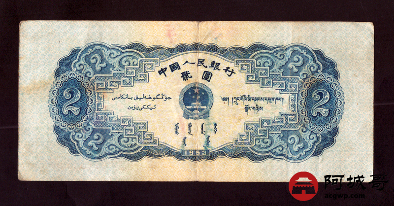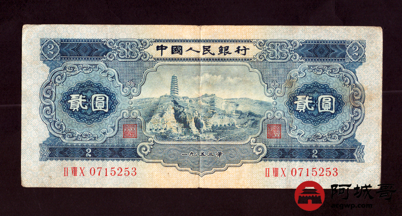 Lot:31 二版 1953年 宝塔山贰圆 69至7成新 好号无4