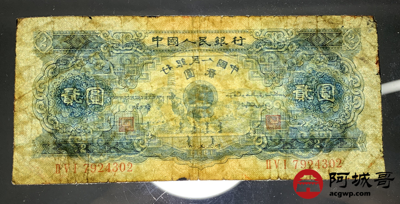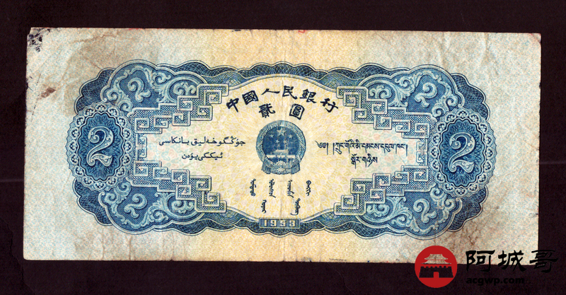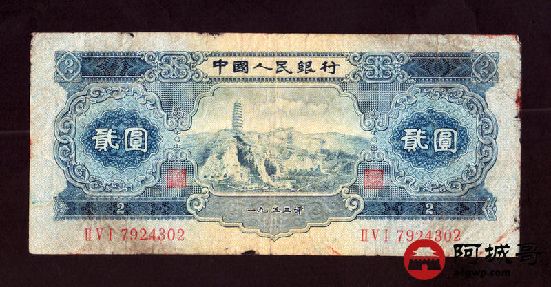 Lot:25 二版 1953年 宝塔山贰圆 69成新