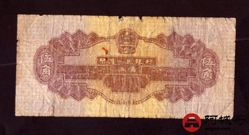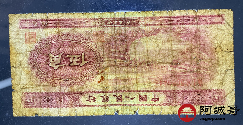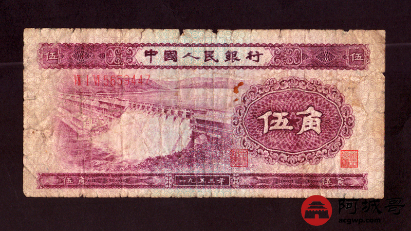 Lot:1 二版 1953年 中国人民银行 深水坝伍角 67成新