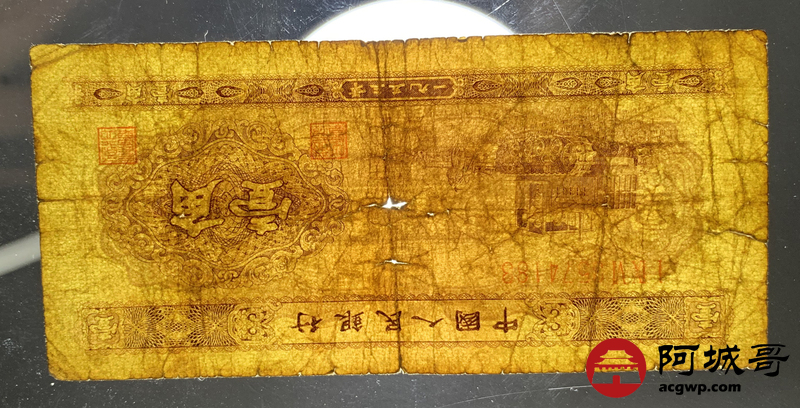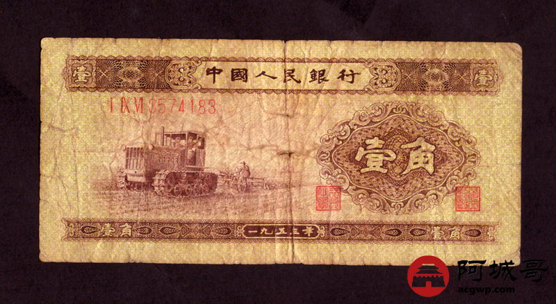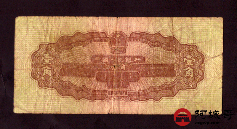 Lot:35 二版 1953年 中国人民银行 黄壹角 68成新