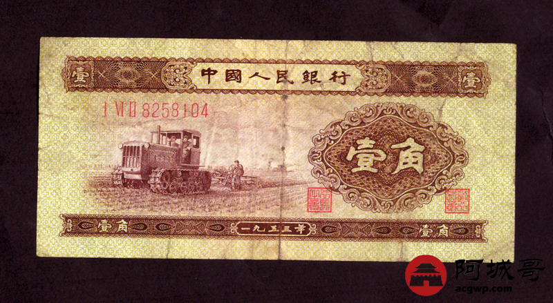 Lot:40 二版 1953年 中国人民银行 黄壹角