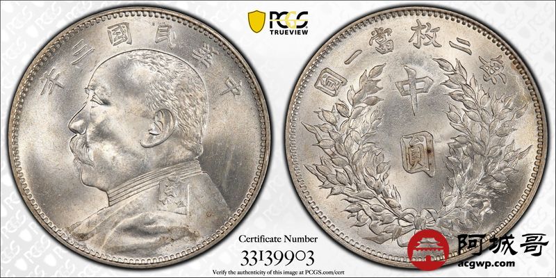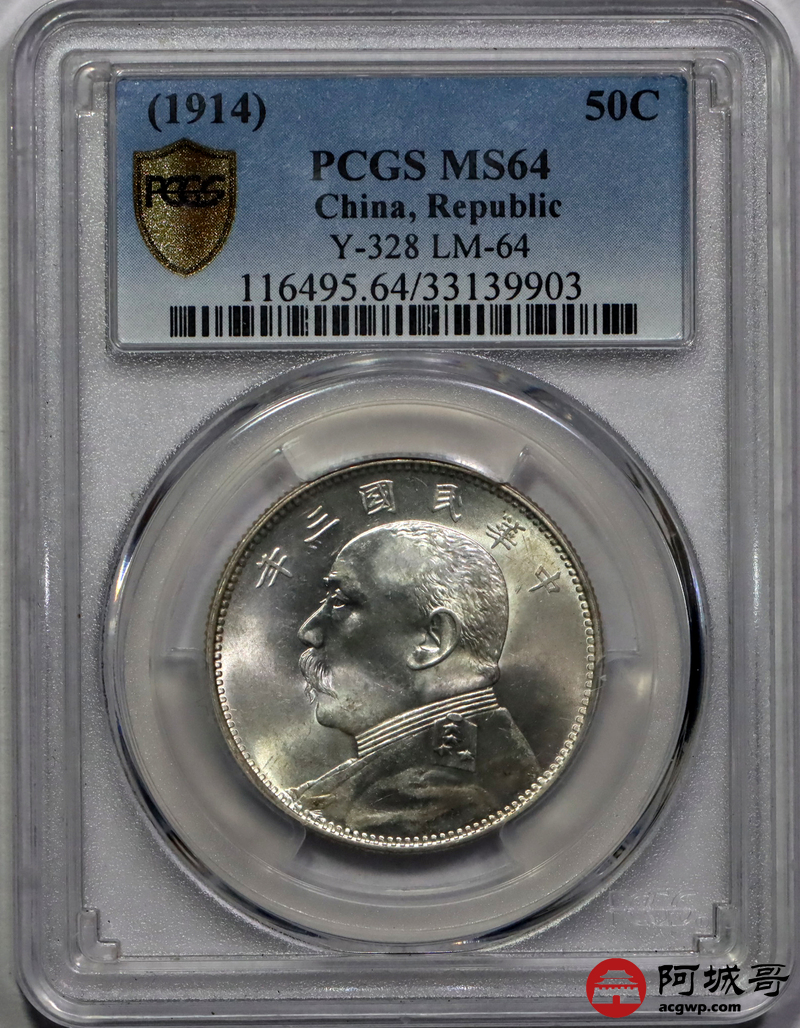 Lot:7 深打 车轮转光 三年大头中圆 PCGS MS64
