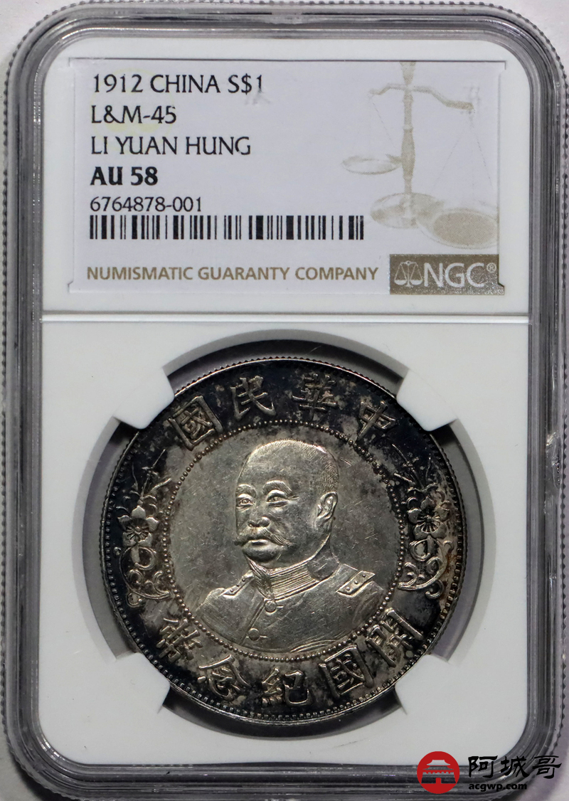 Lot:11 转光 酱彩包浆 黎元洪纪念币 NGC AU58