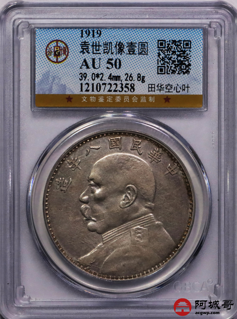 Lot:1 深打全字口 八年大头壹圆田华空心叶 公博 AU50