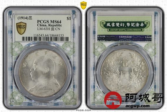 Lot:6 黄油原光 三年大头三角圆 PCGS MS64