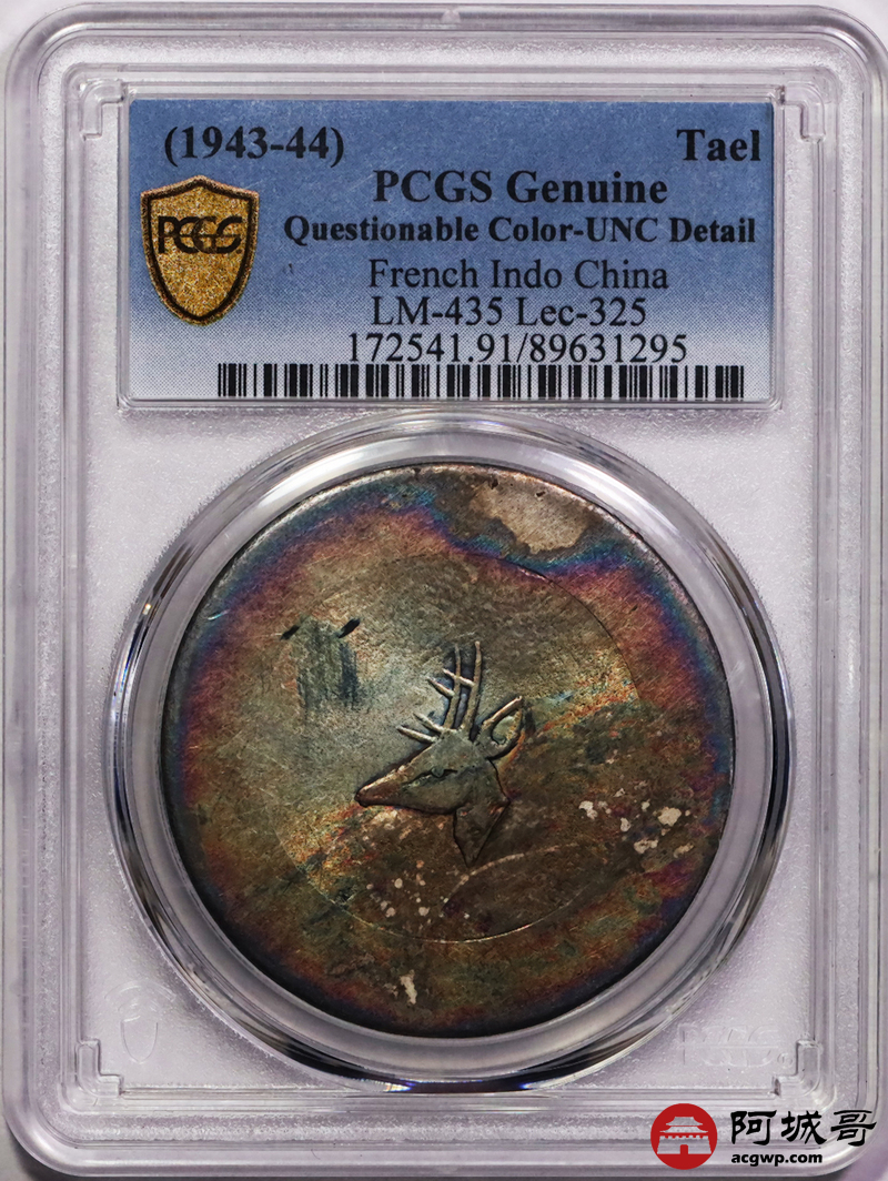 Lot:16 炫丽五彩原光 正银一两小鹿头 PCGS UNC