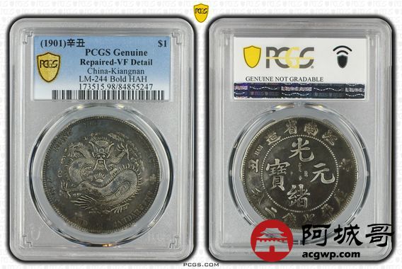 Lot:29 原味黑包浆 江南辛丑七钱二分 PCGS VF