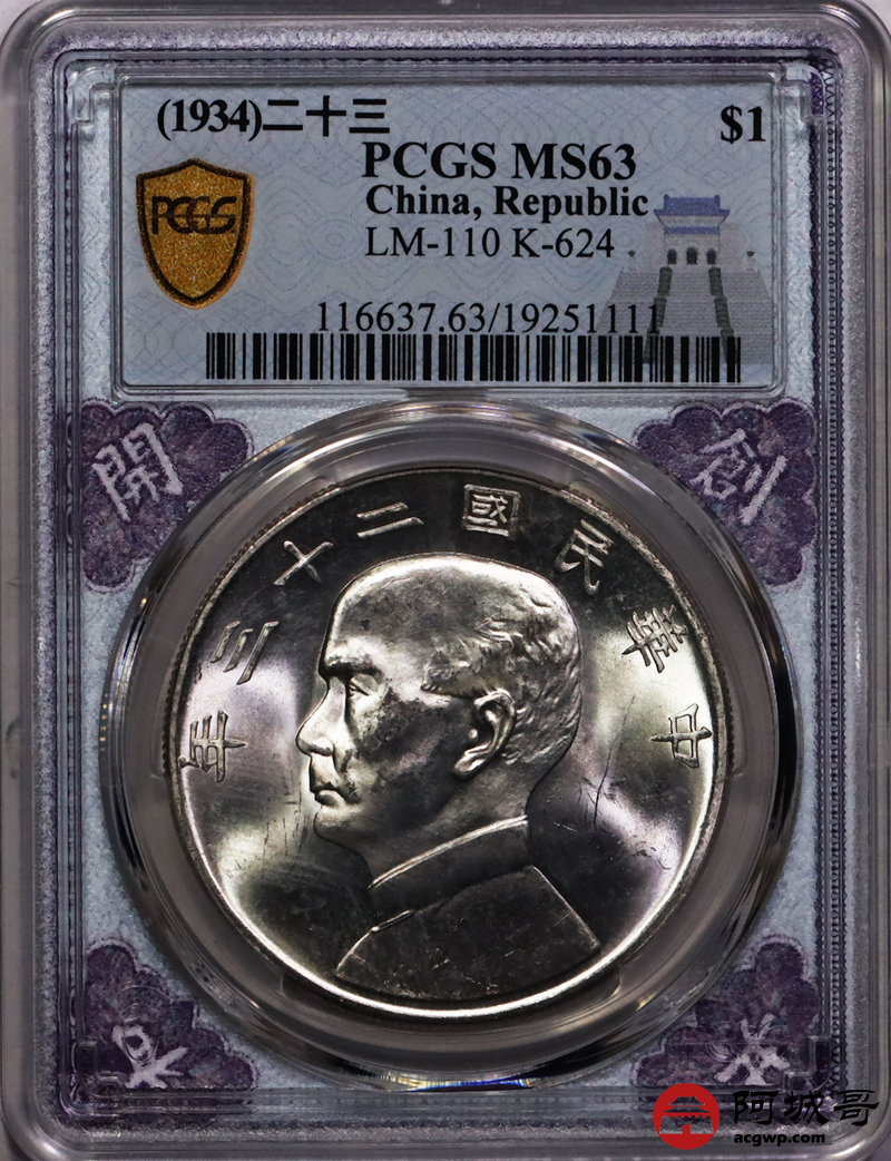 Lot:8 原色光 民国23年船洋壹圆 PCGS MS63