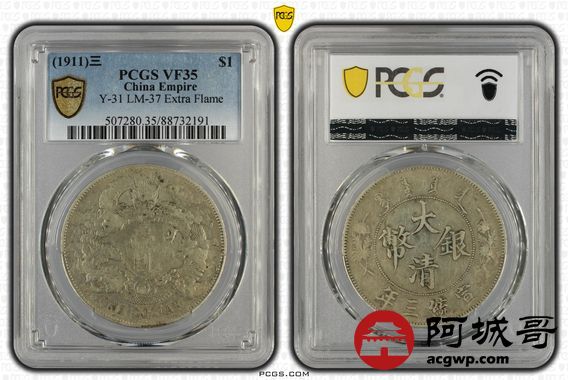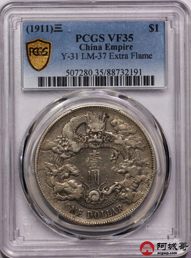 Lot:14 老包浆大清宣三壹圆 PCGS VF35