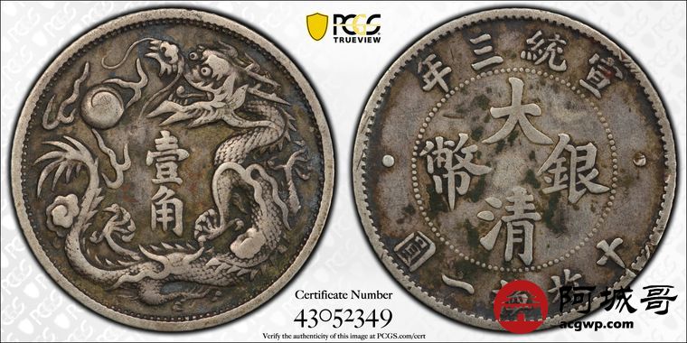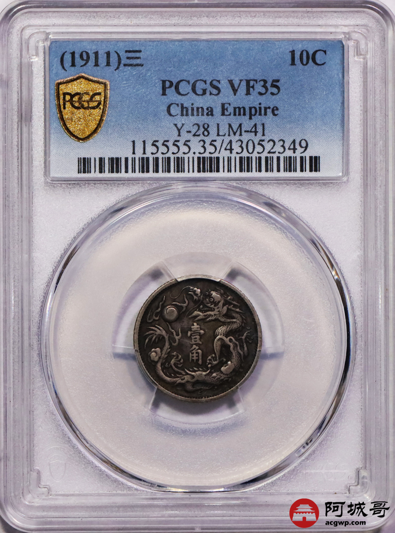 Lot:13 原味老包浆 大清立龙壹角 PCGS VF35盒小磕