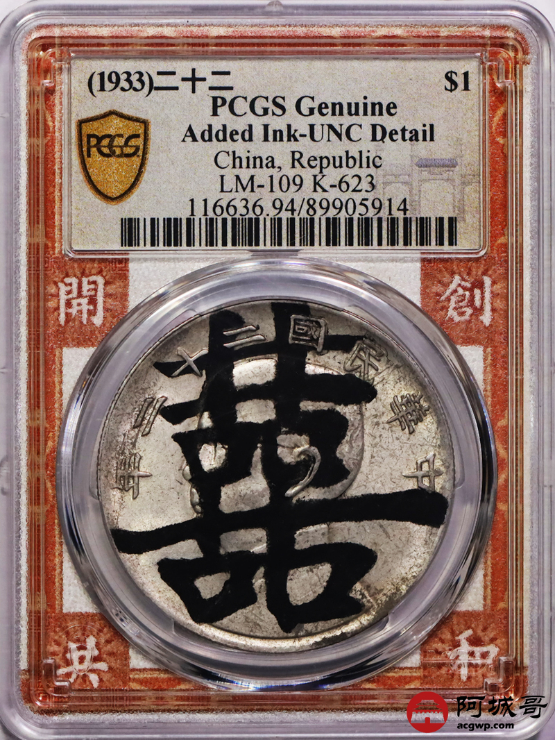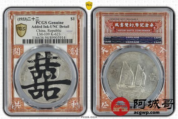 Lot:4 黄油原光 二十二年船洋双囍 PCGS UNC