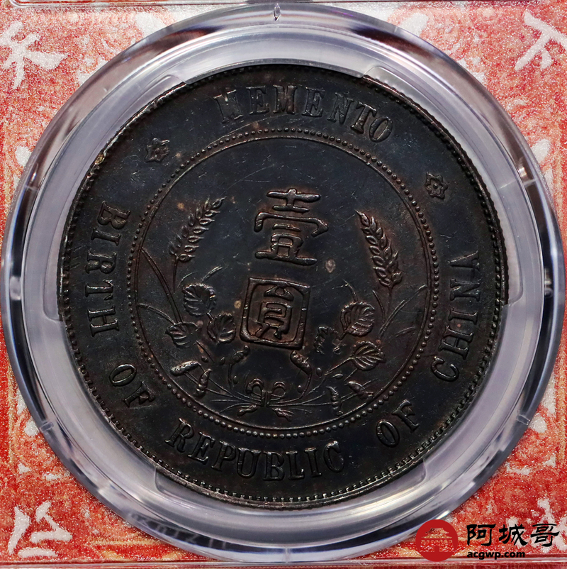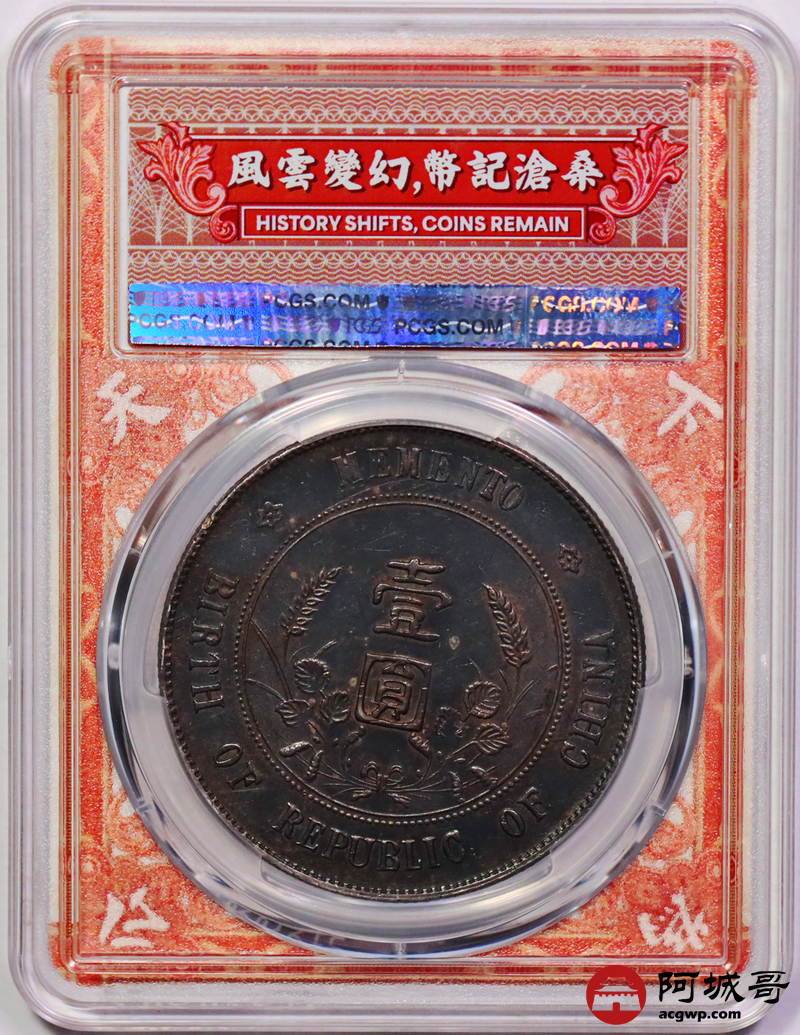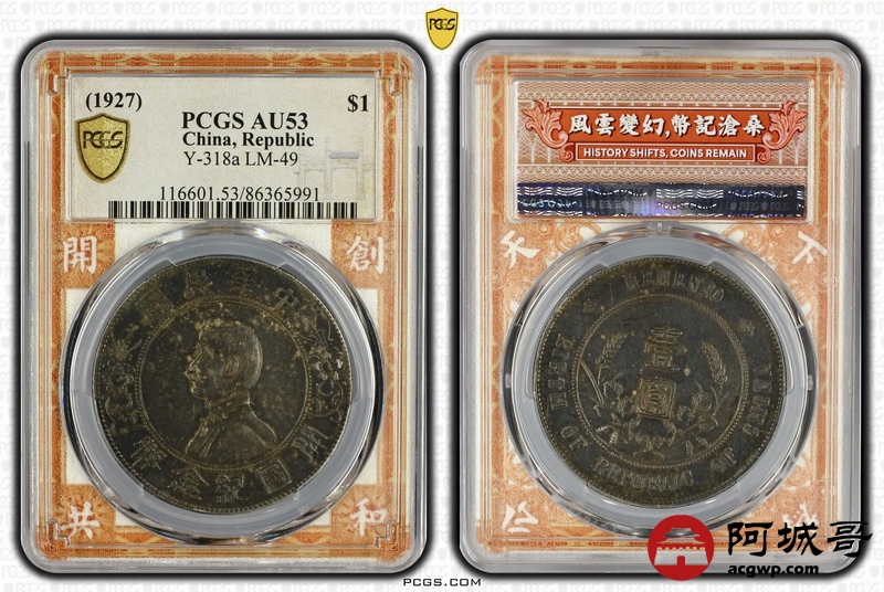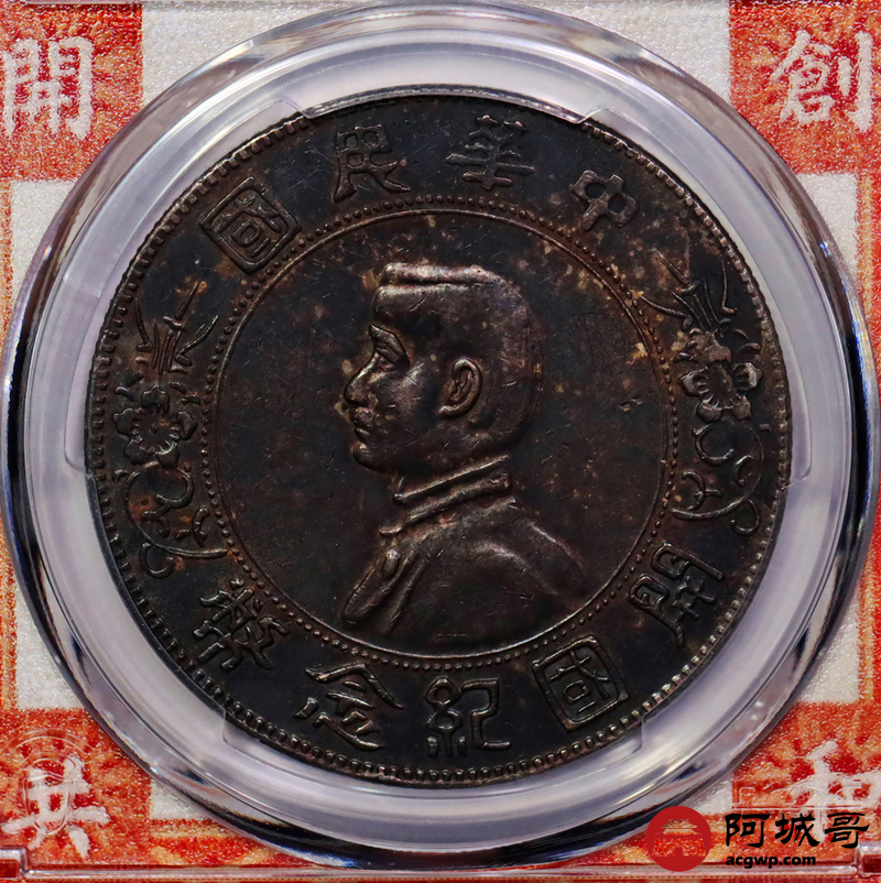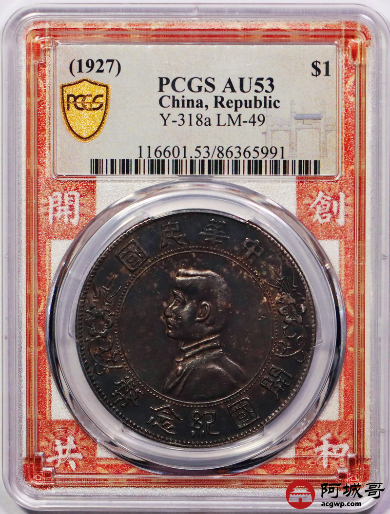 Lot:7 a入骨通体酱红黑彩老包浆 孙像小头壹圆 PCGS AU53