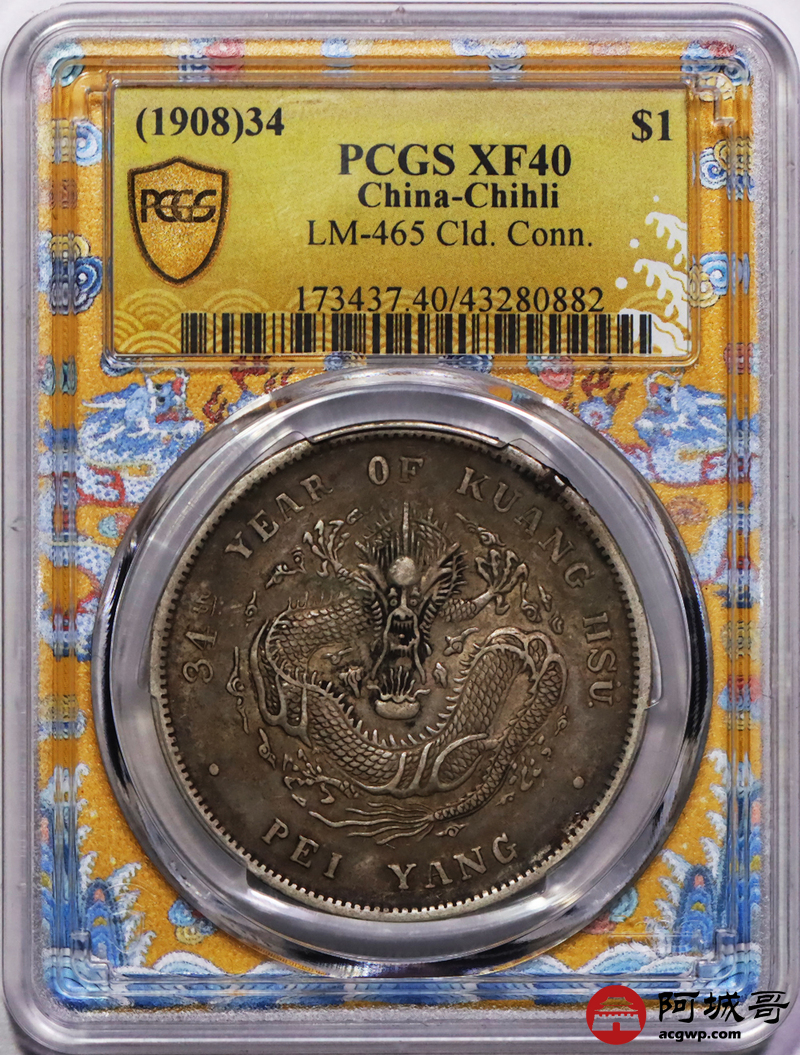 Lot:12 原味老包浆 北洋34七钱二分 PCGS XF40