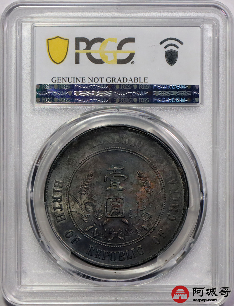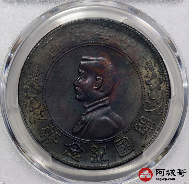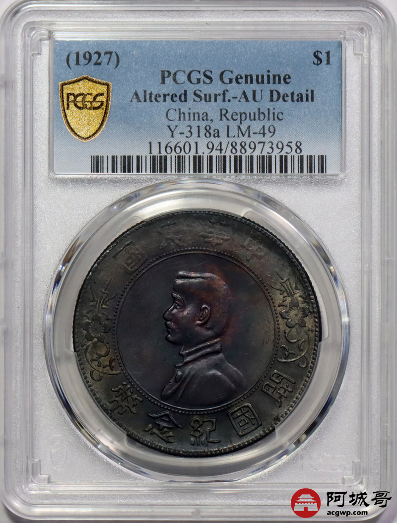 Lot:4 黑五彩包浆 转光 孙像小头壹圆 PCGS AU