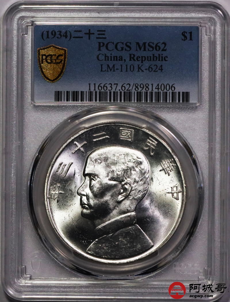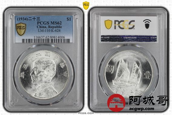 Lot:15 原色光 民国二十三年船洋壹圆 PCGS MS62
