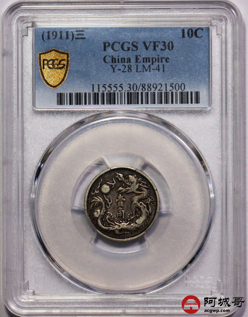 Lot:21 原味 大清立龙贰角 PCGS VF30