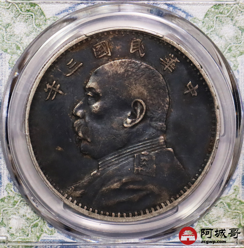 Lot:7 原味 酱黑老包浆 三年大头壹圆 PCGS XF