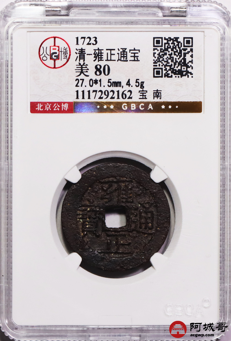Lot:9 清-雍正通宝 宝南 公博 美85 第一大名誉版宝南局 开放式盒子