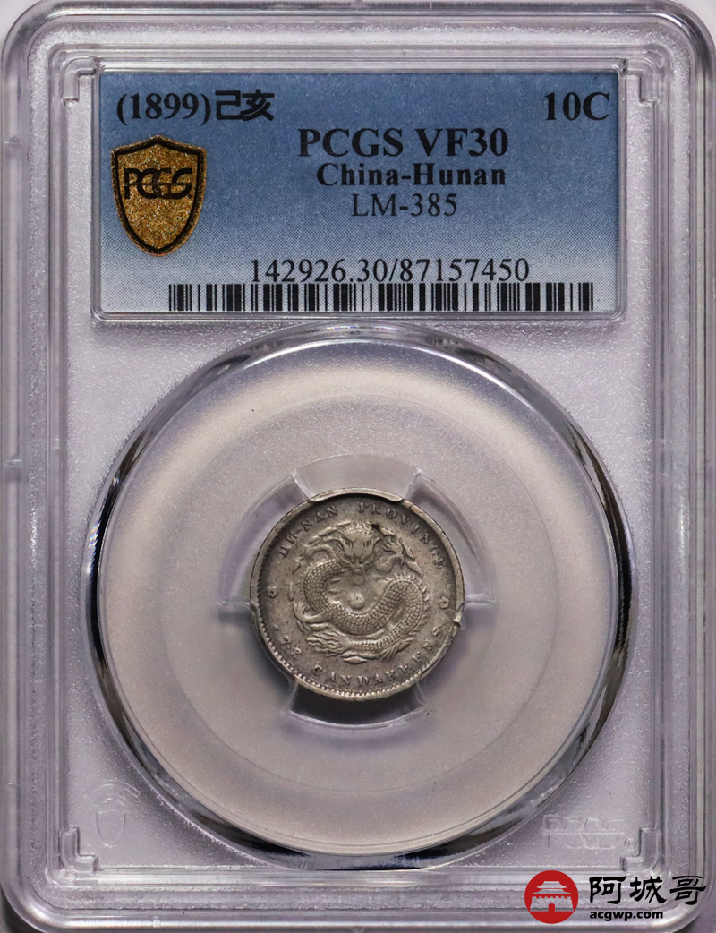 Lot:2 湖南省 己亥造光绪元宝 七分二厘 PCGS VF30