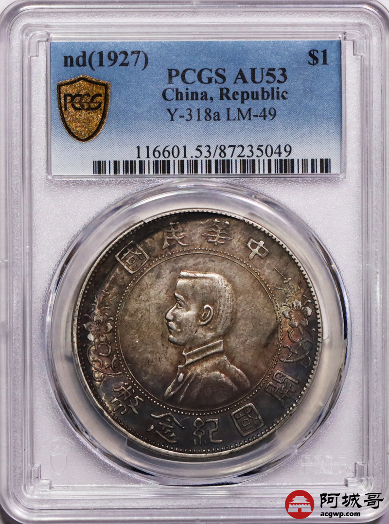 Lot:13 原味酱彩 孙像小头壹圆 PCGS AU53