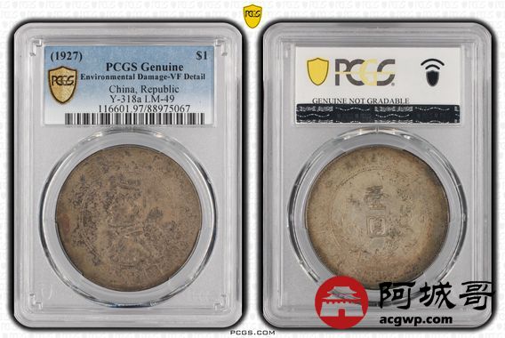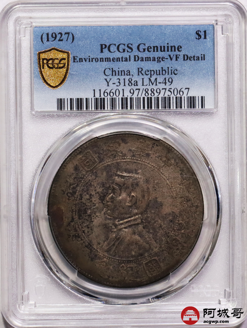 Lot:22 原味老包浆 孙像小头壹圆 PCGS VF