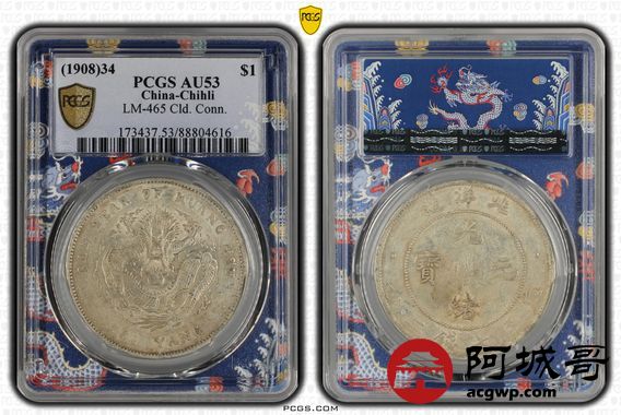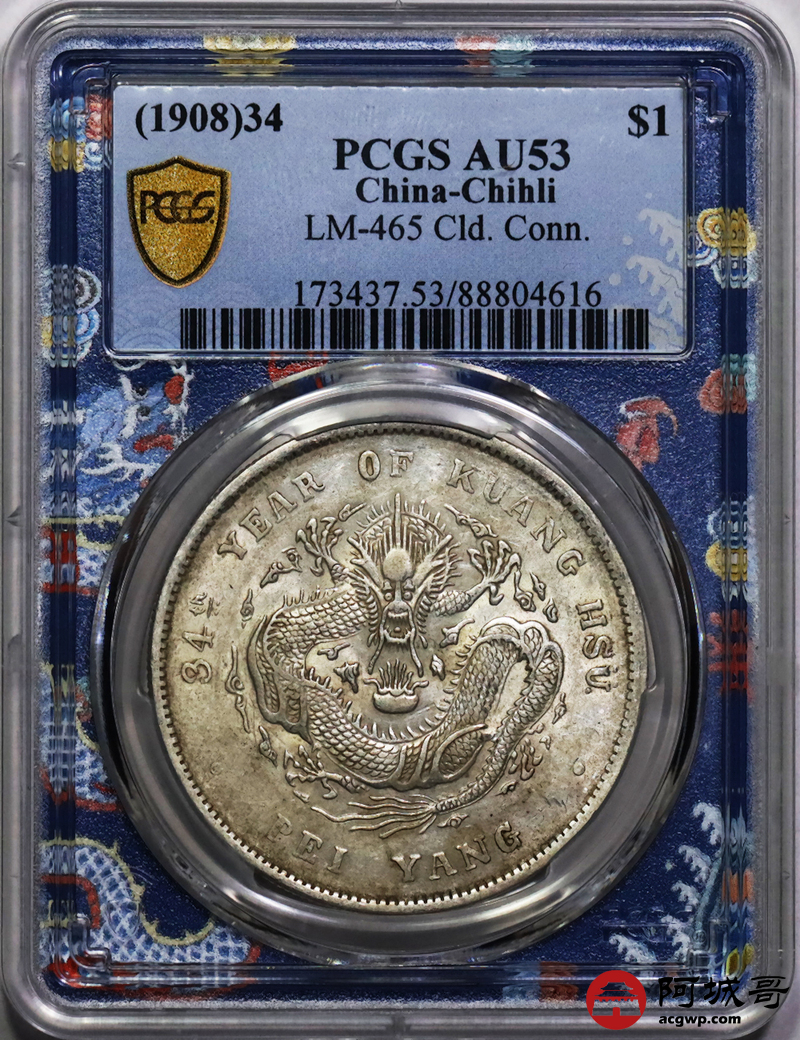 Lot:15 原味黄油底光 北洋34七钱二分 PCGS AU53