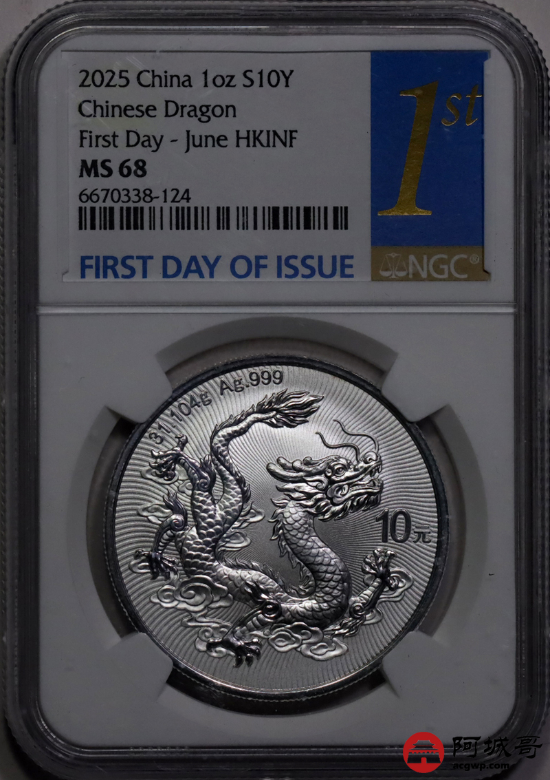 Lot:39 2025年中国龙银币 NGC MS68六月展会白金兰