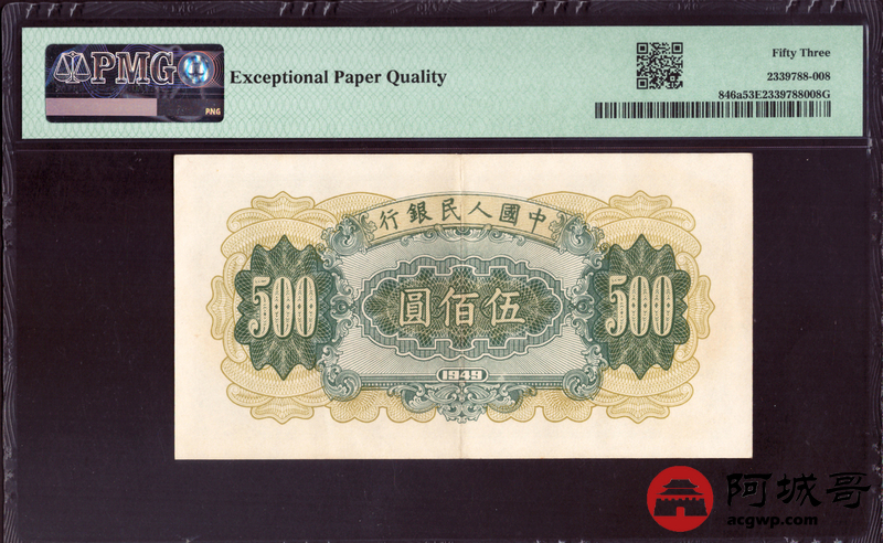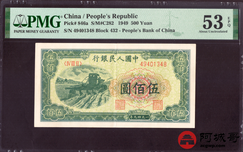 Lot:17 一版 1949年 伍佰圆耕地机 PMG 53EPQ