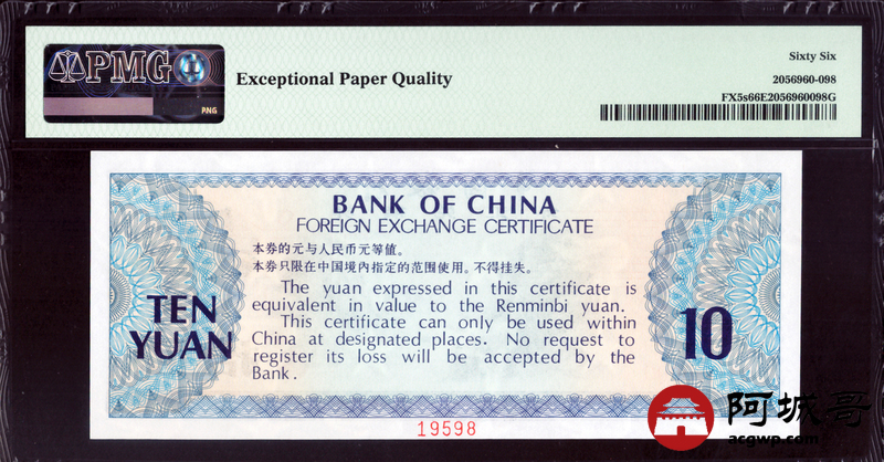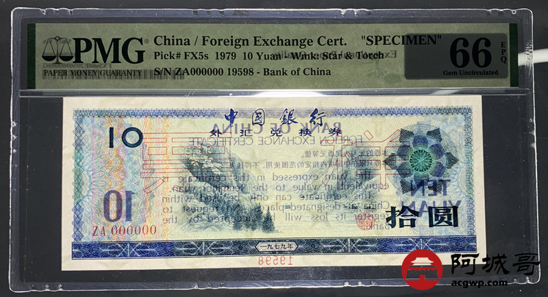 Lot:6 1979年 外汇兑换券10元 样票 PMG 66EPQ