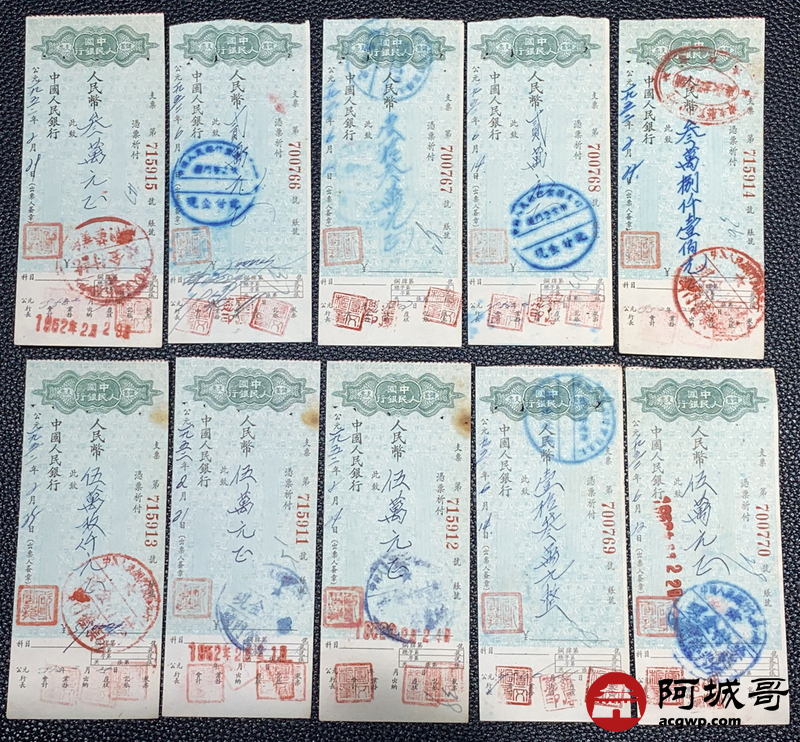Lot:61 1953年 中国人民银行 储蓄支票 20张