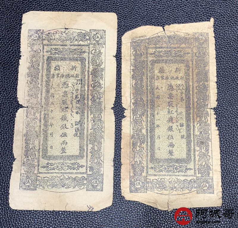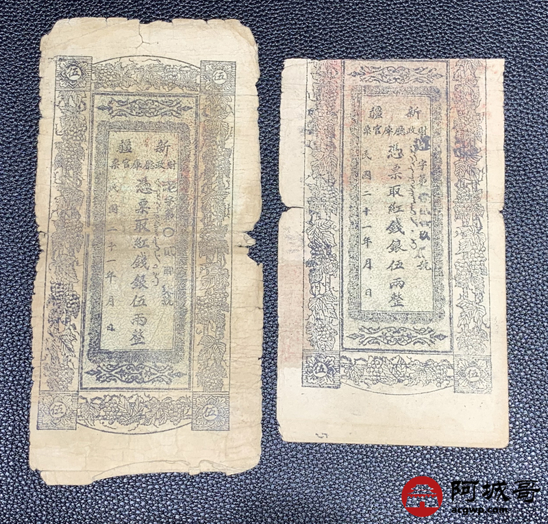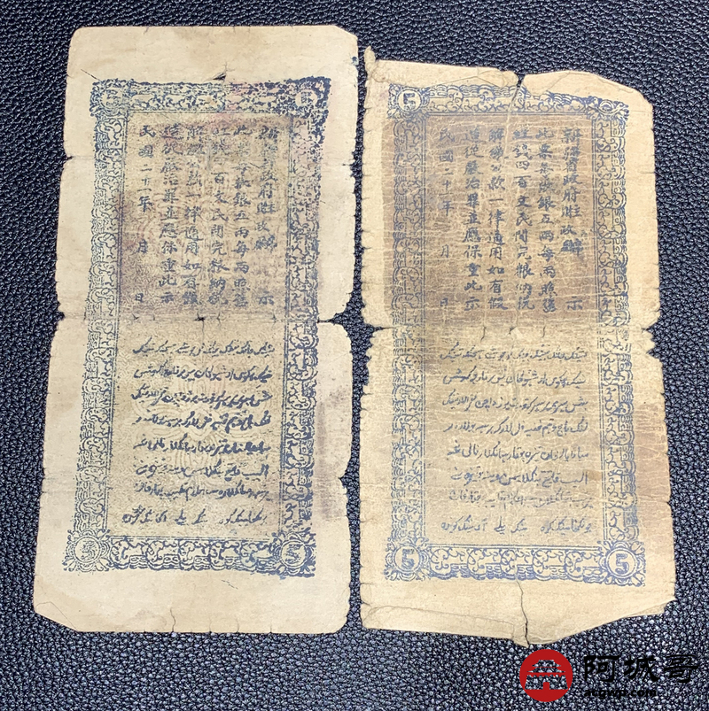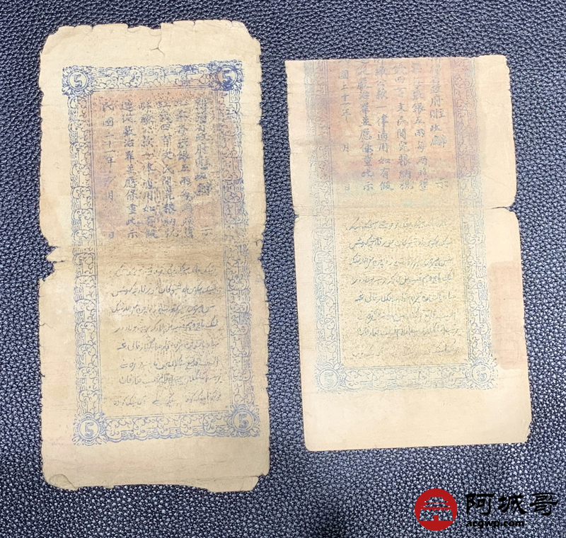 Lot:40 民国二十一年 新疆财政厅库官票 红钱五两整 4张 6至66成新