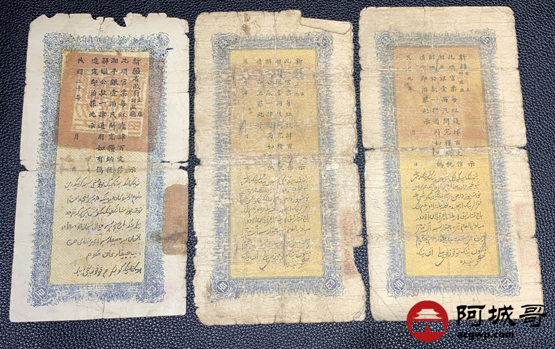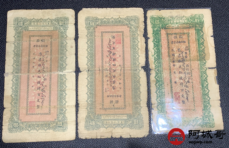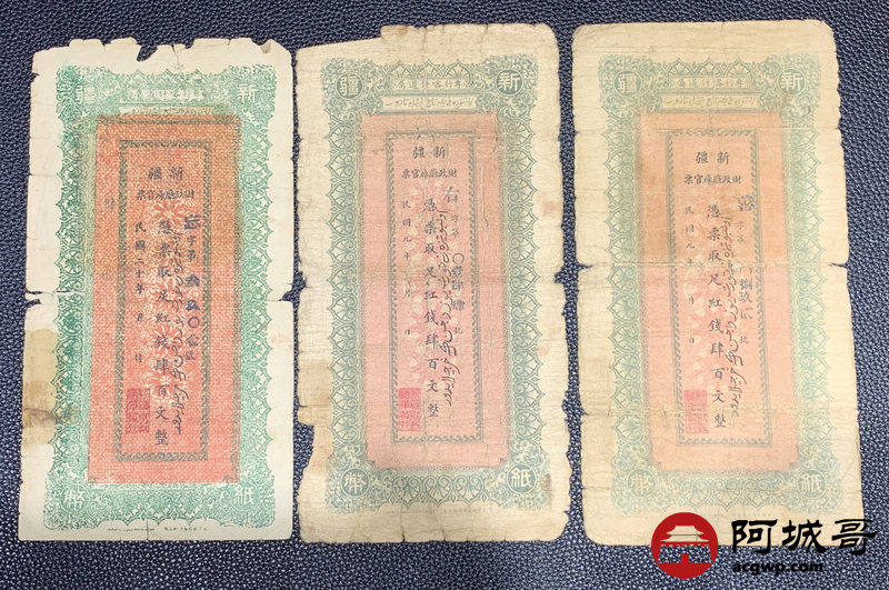 Lot:63 民国二十年 新疆财政厅库官票 红钱肆佰文整 6张 67至68成新